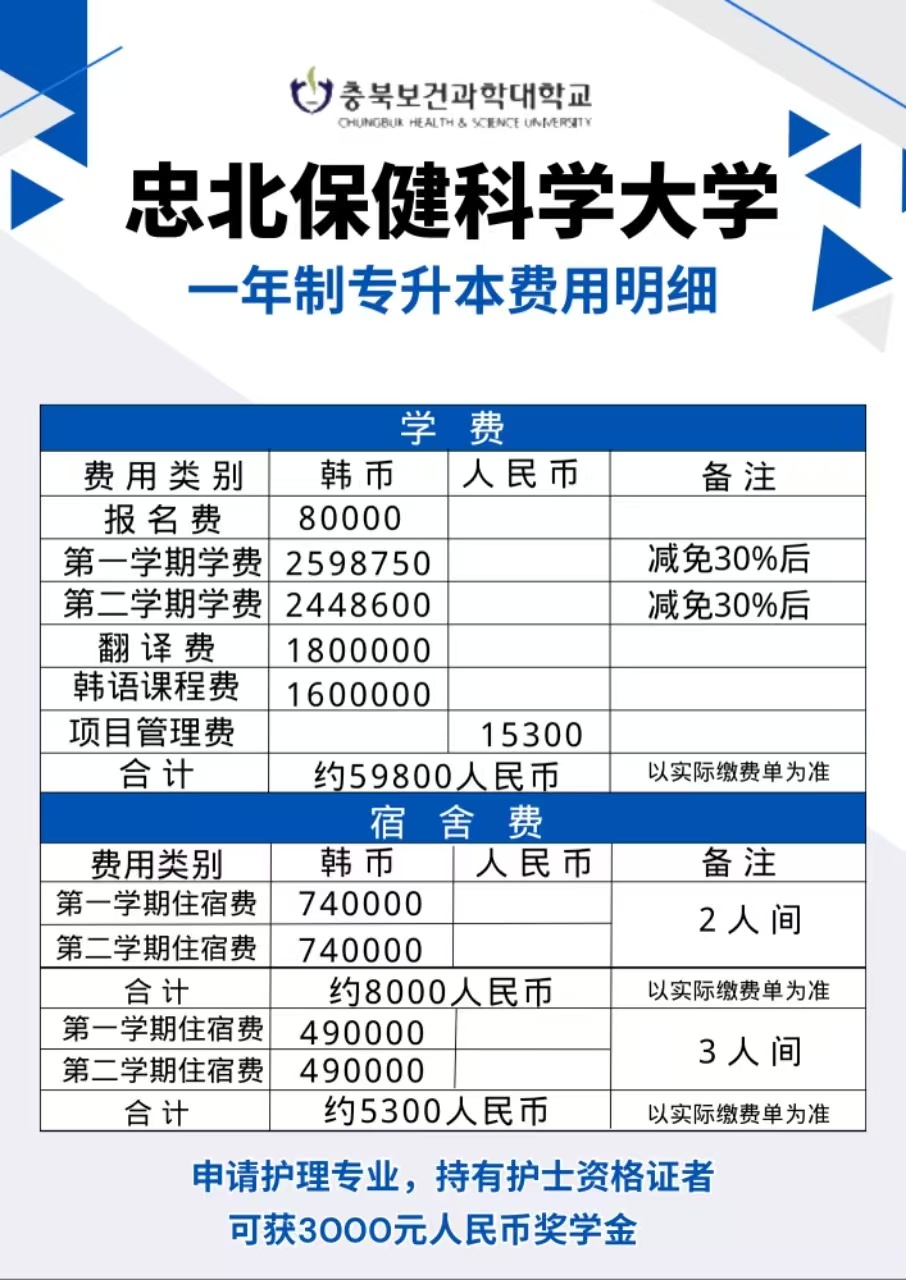 韩国-忠北保健科学大学-1年制专升本(双语授课)